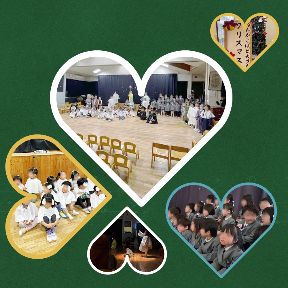 年長組から「もう一度クリスマスページェントをやりたい!」という声があがりました。そこで年少組も年中組も一緒に、自分のやりたい役で参加しました。みつげの天使が4人だったり、マリアが7人だったり...。思い思いの役に気持ちがこもっていました。とても温かい時間でした。